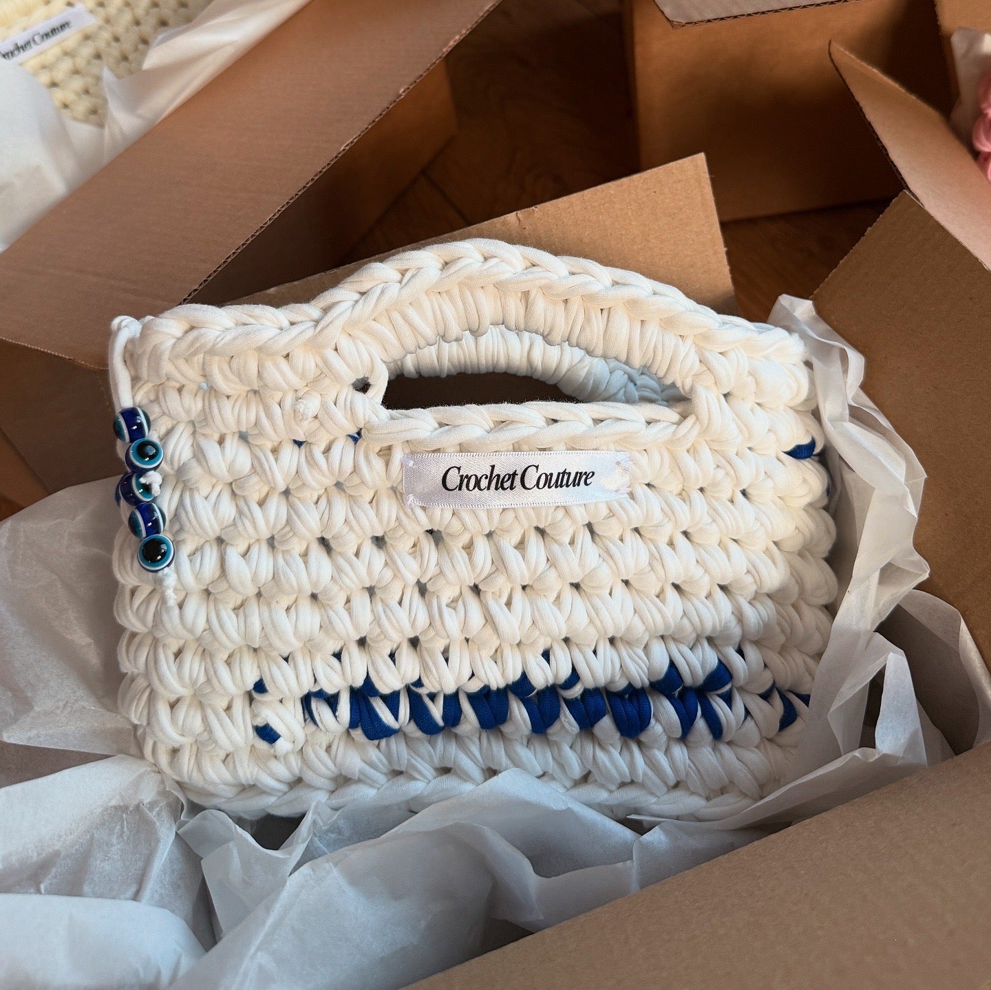Once your order is placed, someone will be in touch to confirm your chosen colour shades and discuss how you’d like the colours to be crocheted onto the bag.
