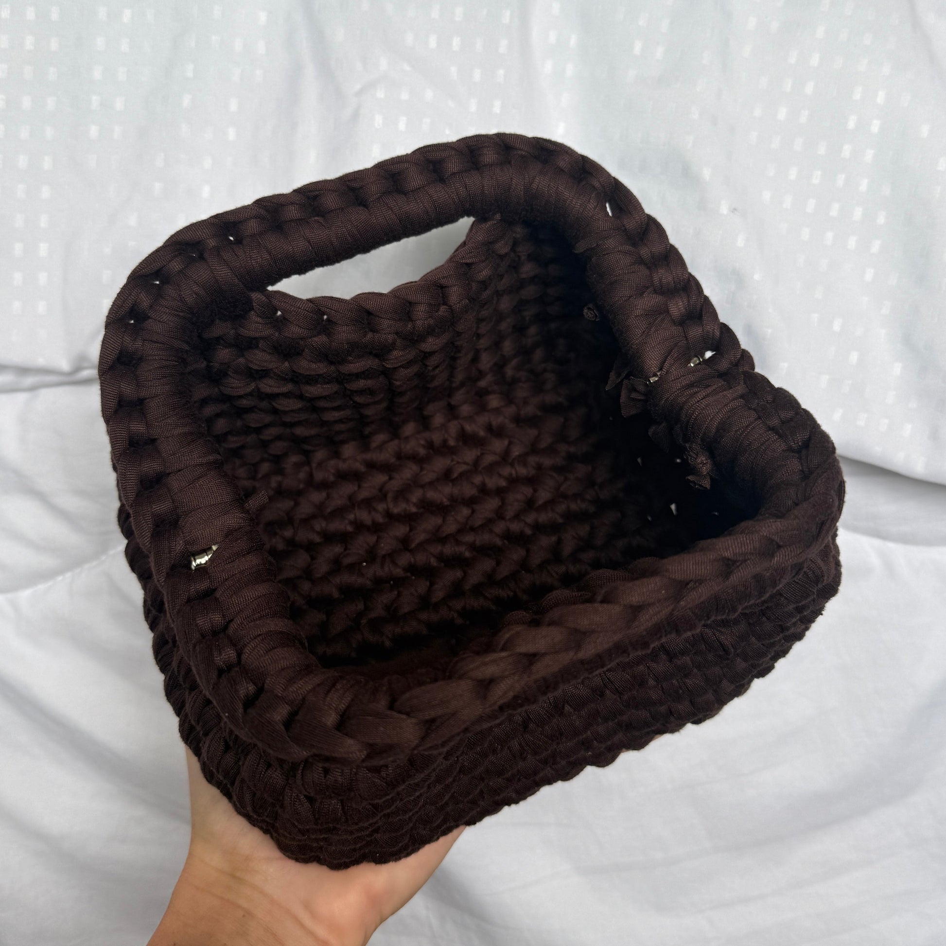 This deep chocolate brown beauty is handcrafted with a rich, chunky weave using 100% recycled T-shirt yarn. Soft yet structured, it features a built-in handle for effortless styling and a bold, sculptural silhouette that stands out. Whether you're heading to brunch or a night out, this clutch adds a warm, earthy touch to any outfit β sustainably and stylishly. π§Άβ¨
